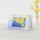 Tarjeta de cumpleaños azul y amarillo para una amiga o familiar. La imagen de delante es de una pintura al óleo original.