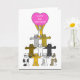 Gatos personalizados de pie sobre los hombros de los demás, con el gato de arriba sosteniendo un gran corazón rosado con las palabras 'Feliz cumpleaños 21' escritas en él.