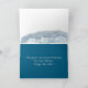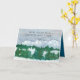 Felices saludos de Año Nuevo presentando una escritura del libro de la Biblia de Salmos 96:11 y decorados con una vista de montaña de invierno con capas de nieve en bolsillos de los evergreens en el bosque. En el interior hay un poco más de nieve con una sombra de azul y texto que puedes editar para adaptarte a tus necesidades.