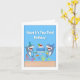 ¡Prepárate para celebrar el tercer cumpleaños de alguien con esta célebre tarjeta de cumpleaños con tema de tiburón! Dos tiburones alegres sostienen una torta de cumpleaños descansando en un plato de torta en forma de tabla de surf, mientras un juguetón de tiburón bebé sale del pastel, y cantan en un gran número "3" el símbolo perfecto para una celebración de segundo cumpleaños. Una variedad de coloridas criaturas marinas, incluyendo un pulpo, peces payasos, tortugas marinas y más, nadan bajo la escena, añadiendo diversión y encanto extra oceánico.