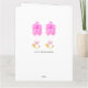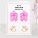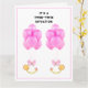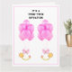 Tarjetas divertidas de felicitación para gemelas bebé con adorables bebés gemelas y globos rosas.