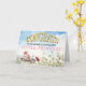 Una forma linda de felicitar a la nueva mamá y a su papá por la llegada de su hija. Escena al aire libre con el ilustracion de una niña que lleva una corona con motivos de pájaro y margarita. Felicidades está en la parte superior de una elegante tipografía de oro, y el resto del texto y el mensaje que hay dentro se pueden personalizar fácilmente.