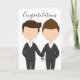 Una hermosa tarjeta de felicitación de boda para una pareja gay que se casa. Cuenta con un dibujo de dos hombres morenos que llevan esmoquin y se dan la mano. Una linda tarjeta de saludo LGBT para felicitar a dos hombres.