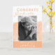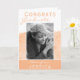 Moderna tarjeta de graduación con foto y nombre del graduado. Fondo naranja de acuarela. Tarjeta de graduación con texto Felicidades, graduado y nombre del graduado - personaliza con tu nombre y tu foto. Personaliza o borra el texto dentro de la tarjeta.