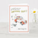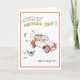 Tarjeta de saludo humorística para el chica que pasa el examen de manejo. ilustracion personalizado de chica en coche con l placas volando.