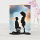 Celebra el camino sagrado de la paternidad con nuestro exquisito "Diseño Espiritual de Felicitación para Pareja Étnica Embarazada". Esta tarjeta cuidadosamente diseñada captura la esencia del viaje milagroso, presentando la silueta de una radiante futura madre de pie con gracia entre las nubes. Su contraparte masculina se arrodilla en reverencia amorosa ante su vientre creciente, simbolizando la unidad y la anticipación de la hermosa vida que está por venir.