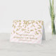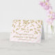 Felicidades por tu tarjeta del día de la boda para la ahijada y su esposo con rayas rosas y blancas y confetti purpurina de oro, y verso sentimental.