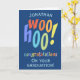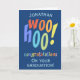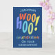 Una colorida tarjeta de felicitaciones por graduación. Esta moderna tarjeta tipográfica es la manera perfecta de felicitar a alguien cuando se gradúa. Personalice con un nombre y un mensaje personalizados.