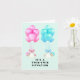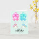 Creativa tarjeta de gemelos chica y niño con globos rosados y azules, bebé y niño gemelos y línea divertida. Para personalizar el texto de edición.
