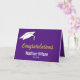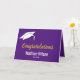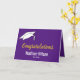 En la parte delantera, esta tarjeta morada y blanca de graduación tiene un gorro blanco en la esquina superior izquierda. El texto en pantalla dice 'Felicitaciones' en un guión falso de oro. En "Felicitaciones", hay un lugar para el nombre del graduado en blanco. Incluso puede agregar la clase del año bajo el nombre. Dentro de la tarjeta hay un mensaje inspirador. Además, puede agregar el nombre del graduado y su nombre como remitente.