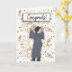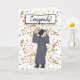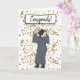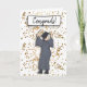 Felicitaciones a una tarjeta de graduada de Confetti para una estudiante graduada con una graciosa chica saltando o bailando en su vestido.