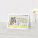 Felicitaciones a una Prima Querida y a su Nuevo Esposo. Felicidades por boda, tarjeta de saludo de papel. Ilustracion de una novia y novio de un gato. El novio lleva puesto un abrigo de traje azul y la novia lleva puesto un largo vestido de flores y un ramo. Imagen y verso © Shoaff Ballanger Studios.