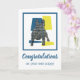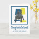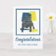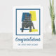 Silueta francesa de Bulldog con un patrón de líneas de rejilla amarillo azul y negro moderno. Felicidades por tu nuevo cachorro afuera y el mensaje divertido dentro puede cambiarse a lo que quieras.
