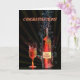Esplandor de vino y burbujas de una botella y un vaso da a esta carta de felicitaciones una sensación de emoción. Las palabras "Pasaste" están impresas en la etiqueta de la botella de vino. Una gran manera de felicitar.