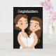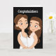 Felicita a la feliz pareja lesbiana con esta hermosa tarjeta de bodas que presenta un dibujo de dos mujeres morenas enamoradas. Personaliza el interior con tus mejores deseos de felicitación para estas hermosas mujeres gays. Tarjeta de bodas LGBTQ linda.