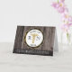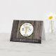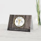 Tarjeta de felicitaciones con aspecto de madera rústica con emblema negro, blanco y dorado y símbolo de caduceo en tono dorado para la clase de Enfermería RN. El mensaje personalizado en el interior se puede eliminar para dejar una tarjeta en blanco o modificar según sea necesario. Diseño por Holiday Hearts Designs (derechos reservados).