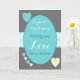 Personaliza esta tarjeta de día de boda gris, turquesa, amarilla, con corazones, para la Novia y el Novio, con sus nombres.