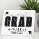 Gradats Grad Bold Elegant Black and White Graduation Card Celebra este hito especial con una elegante y atemporal tarjeta de graduación. El frente presenta "Congrats Grad" en elegante escritura gris y tipografía negrita negra, creando un diseño sorprendente y festivo. Debajo, hay espacio para personalizar la tarjeta con el nombre del graduado, la escuela y la "Clase de 2025" (o cualquier año), lo que lo hace un agudo descanso. Dos iconos de tapón de graduación agregan un toque festivo para completar el aspecto. En el interior, hay espacio para añadir un mensaje personal, o puedes elegir dejarlo en blanco si prefieres escribir a mano tu nota. El diseño clásico en blanco y negro lo mantiene sofisticado y versátil, pero todos los colores (incluidos los iconos de texto y gorro) se pueden personalizar para que coincidan con los colores de la escuela o con el estilo personal del graduado. ¡Una manera perfecta de felicitar al graduado y celebrar sus logros!