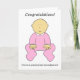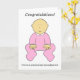 Una linda niña vestida con un traje rosado, sentada con un crujiente fondo blanco. Las palabras "Felicitaciones, eres un gran, gran abuelo" acompañan la imagen.