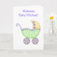 Tarjeta Felicitaciones Nombre del bebé Buggy verde persona