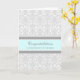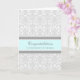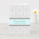 Tarjeta de felicitación boda para los padres de la novia con un diseño contemporáneo de damasco vintage floral de color azul turquesa, gris y blanco. El texto es totalmente personalizable para que usted escriba su propio mensaje personalizado, una manera única de felicitar a los padres de la novia por el matrimonio de su hija.
