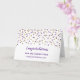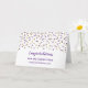 Felicidades por tu tarjeta del día de la boda para la madrina con confetti purpurina morado y dorado y verso sentimental.