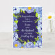 Felicitaciones por tu tarjeta del día de la boda para la prima y su esposo con hermoso patrón de flores de acuarela azul y verso sentimental.
