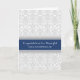 Felicitaciones a nuestro hijo y nuera en su día de boda tarjeta. Elegante y contemporáneo con un patrón clásico de damasco floral vintage en azul marino oscuro, gris y blanco, la forma perfecta de decirles lo orgulloso que está en este día tan especial.