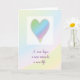 Un corazón arcoiris sobre un fondo suave es una carta suave para que alguien sepa que estás pensando en ellos mientras esperan a su bebé arco iris. Después de perder uno antes, su bebé milagroso está trayendo esperanza a la pareja mientras esperan la nueva vida a lo largo del embarazo. Perfecta tarjeta de felicitaciones sensibles y cariñosas al esperar a su bebé arco iris.