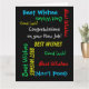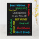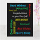 Qué tarjeta de felicitación maravillosa y divertida de un grupo para un compañero de trabajo que obtuvo un nuevo trabajo o promoción. En la portada, el texto se repite en diferentes tipos de letra y colores sobre un fondo negro. También es fácil modificar el texto interno, si lo desea. El tamaño predeterminado es JUMBO, para dejar espacio para que firmen muchos compañeros de trabajo. Es fácil cambiar al tamaño estándar, si lo desea. Todos los derechos reservados © 2014 Marcia Socolik.