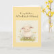 Tarjeta de felicitación religiosa "Felicitaciones - un recién nacido es una bendición". Ilustracion de oveja y colores suaves, con texto dentro (añadir texto, cambiar texto o borrar texto para tener una tarjeta en blanco y escribir tu mensaje a mano): "Felicitaciones y mejores deseos para ti. Que el bebé que Dios te ha enviado para que tengas, te aferres y ames, te guíe por tus gentiles manos y sea bendecido por él". Diseñado por Best Baby Gifts - con amor.