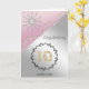 Esta elegante tarjeta presenta una combinación de perlas, oro rosa y plata con una estrella de gema de diamante y un número único de purpurina de oro.