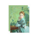 Este diseño presenta un cuadro del artista escocés George Henry (1858-1943), uno de los miembros más destacados de la Escuela de Arte de Glasgow, retrato de una bella joven llamada Felicity. Está sentada en una mesa y lleva puesto un vestido azul turquesa. Sus codos están descansando sobre la mesa y ella está sosteniendo sus manos juntas junto a su cara. Felicity empieza con atención al espectador. Claramente es una mujer elegante. Su pelo castaño-marrón está de moda y lleva una bufanda sobre su vestido, un poco más oscuro de turquesa que el vestido en sí. La vegetación de fondo da a entender que está sentada en el exterior en un jardín. La obra original fue pintada por George Henry en 1916.