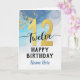 Tarjeta Feliz 12º cumpleaños acuarela Blue & gold Boy