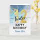 Divertida, alegre, elegante tarjeta de cumpleaños. acuarela abstracta en azul con falso oro gran número. ¡Obtén esta carta alegre para celebrar a tu amigo o familia!
