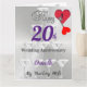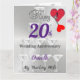 Personalizado feliz 20º año Boda Aniversario tarjeta de saludo para esposa, con presupuesto y diseño de corazones de amor. Se puede personalizar totalmente para parejas, esposos o esposas. Personalizado de lujo diseño de tarjetas de 20 años con nombre y fecha.