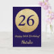 Tarjeta Feliz 26 cumpleaños Purpurina azul y oro de la Mar