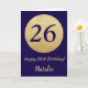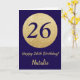 Feliz 26º Nacimiento de la tarjeta de Purpurina Azul y Oro de la Marina con nombre personalizado. Para una mayor personalización, haga clic en el botón "Personalizar" y utilice nuestra herramienta de diseño para modificar esta plantilla.