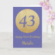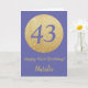 Feliz 43 cumpleaños y tarjeta Purpurina de oro con nombre personalizado. Para una mayor personalización, haga clic en el botón "Personalizar" y utilice nuestra herramienta de diseño para modificar esta plantilla.