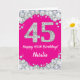 Feliz 45º cumpleaños, tarjeta Purpurina Plata y Rosa Caliente con nombre personalizado. Para una mayor personalización, haga clic en el botón "Personalizar" y utilice nuestra herramienta de diseño para modificar esta plantilla.