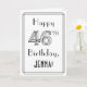 La parte delantera de este elegante diseño de tarjetas de felicitación inspirado en arte deco de los años 1920-1930 tiene el mensaje "Feliz cumpleaños 46", junto con un nombre de destinatario personalizado. El número "46" de la parte delantera tiene un aspecto elegante y bordeado. El interior tiene un mensaje de saludo de cumpleaños modificable, o tal vez podría ser borrado y dejado en blanco si se va a escribir un mensaje a mano. Una elegante y editable tarjeta de felicitación de cumpleaños como esta podría ser enviada para celebrar el 46º cumpleaños de alguien. [~Z0000641]
