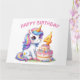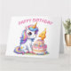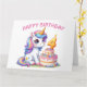 Feliz 4° cumpleaños. Hoy tiene cuatro años. Cute unicornio en colores rosa y lila. Un pastel de cumpleaños con una Vela número tres. Una adorable tarjeta de cumpleaños para niños. Esta tarjeta está en blanco dentro para su propio mensaje. También disponible como descarga digital para su transferencia a otros productos.