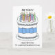 Una tarjeta de diversión para celebrar el 50 aniversario de cualquier nuera especial. Un pastel personalizado cubierto de velas multicolor y con un arco azul alrededor.