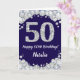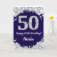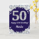 Tarjeta Feliz 50 cumpleaños Purpurina azul y plateado de l
