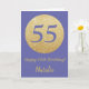 Feliz 55º cumpleaños y tarjeta Purpurina de oro con nombre personalizado. Para una mayor personalización, haga clic en el botón "Personalizar" y utilice nuestra herramienta de diseño para modificar esta plantilla.