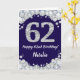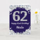 Tarjeta Feliz 62º cumpleaños Purpurina azul y plateado de