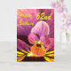 Una hermosa flor rosa y amarilla de pansy con un saludo de cumpleaños.