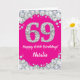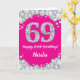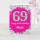 Tarjeta Feliz 69 cumpleaños Purpurina de Plata y Rosa Cali