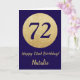 Tarjeta Feliz 72 cumpleaños Purpurina azul y oro de la Mar