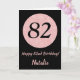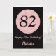 Tarjeta Feliz 82º cumpleaños oro negro y rosado Rosa